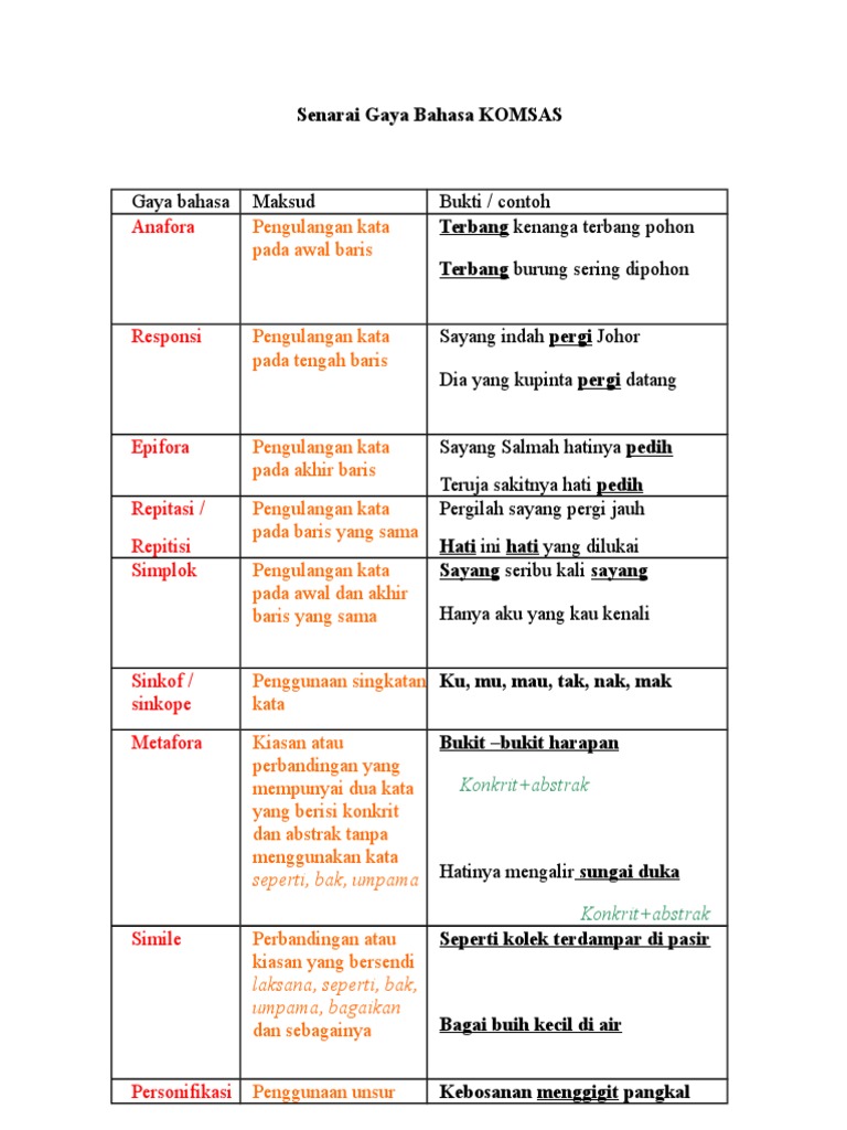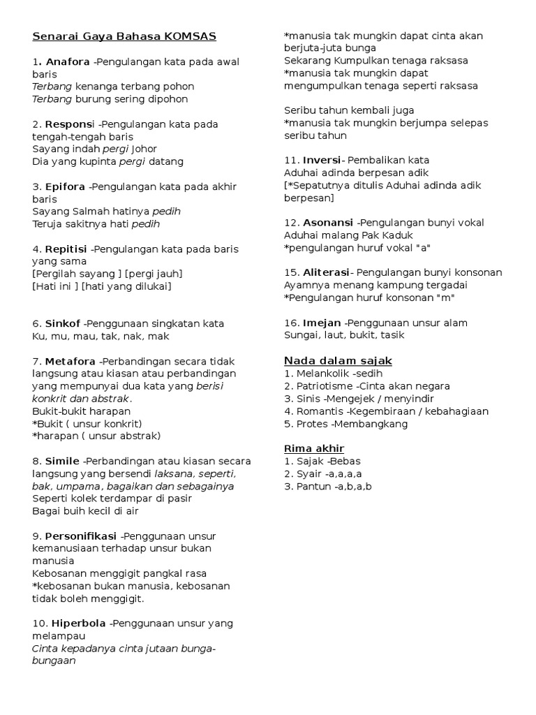 Nota Gaya Bahasa Komsas Tingkatan 1 Pdf
